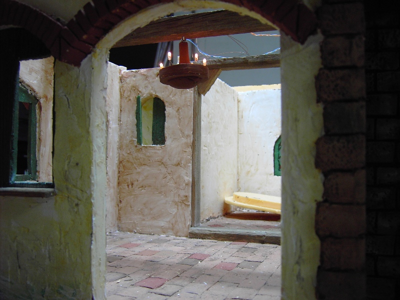 No quiero inundarte de preguntas... por lo que decido solo alagarte. QUE SUPER TRABAJON, chico... yo creo que esto es un buen trabjo y muy laborioso, ademas de minucioso y bien logrado. """" Hay que ver """ que dormitorio, posada, escaleras, fuente, ventanas,etc, etc, y más etc. (Formidable). Solo una pregunta , ¿las lamparillas, también las haces tu?