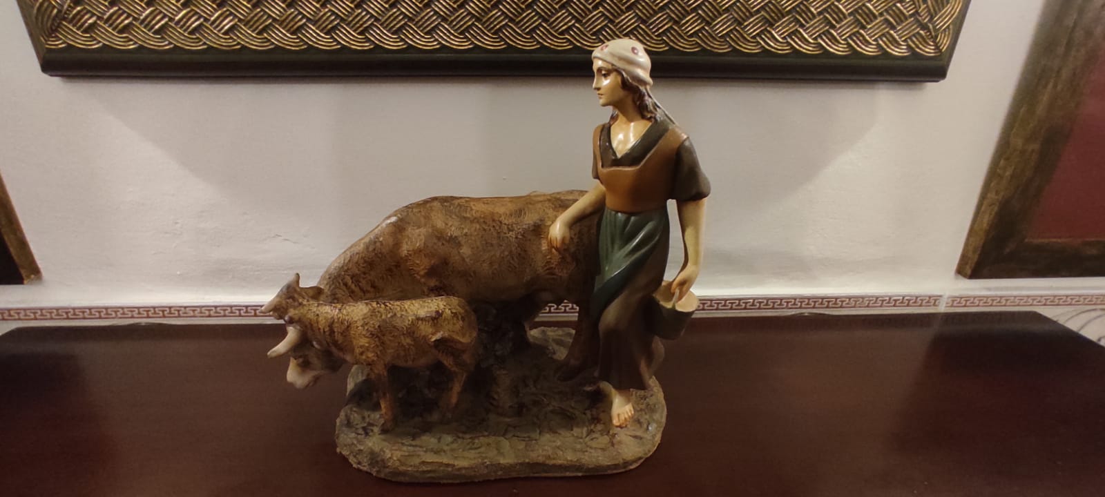 Pastora con cubo de leche, vaca y ternero, 125 €
