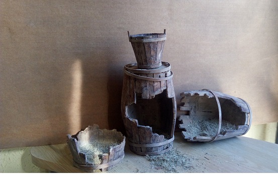 barricas enteras o barricas/gallinero fabricado en poliestireno extruido con aros de madera. En cualquier medida desde figuras de 20 cm.