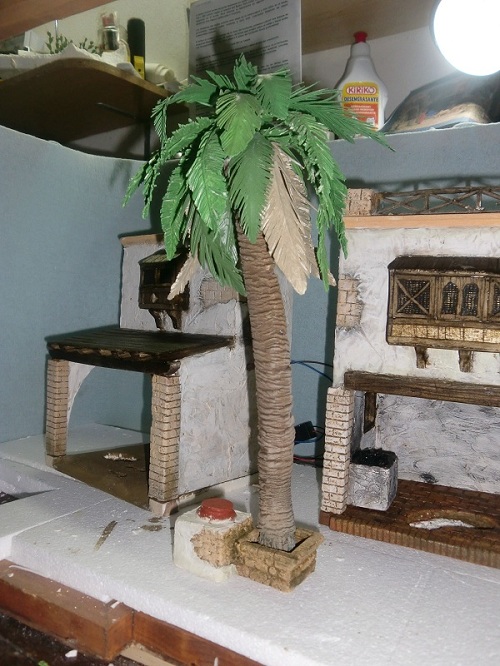 Podeis ver las eficaciones y la palmera construidas con la tecnica de emore. Son para figuras de 8 cm y para un belen de 100x60 cm (no tengo mas espacio). Ya volvere a colgar las fotos del belen terminado.
