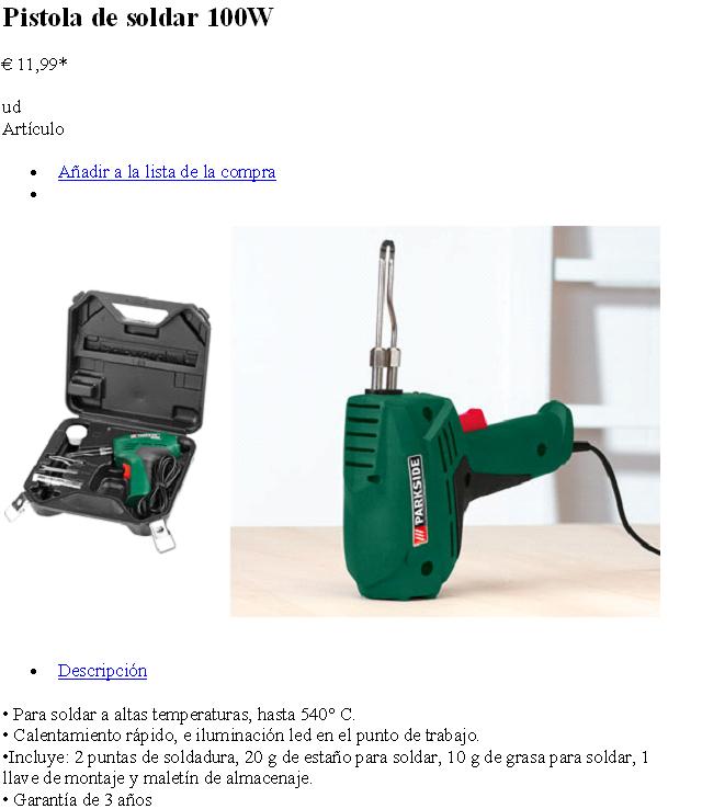 Aqui teneis un soldador barato (11,99 euros) que saldra a la venta el dia 30/07/2012 en el LIDL , es un precio que para esteos tiempos de crisis esta muy bien .