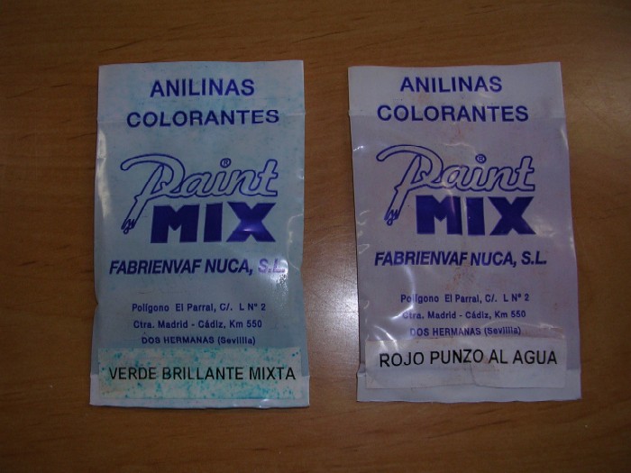 La anilina la mezclo con la tierra echándola directamente del sobre, teniendo la precaución de verter poca cantidad, ya que colorea bastante, sin echar nada de agua