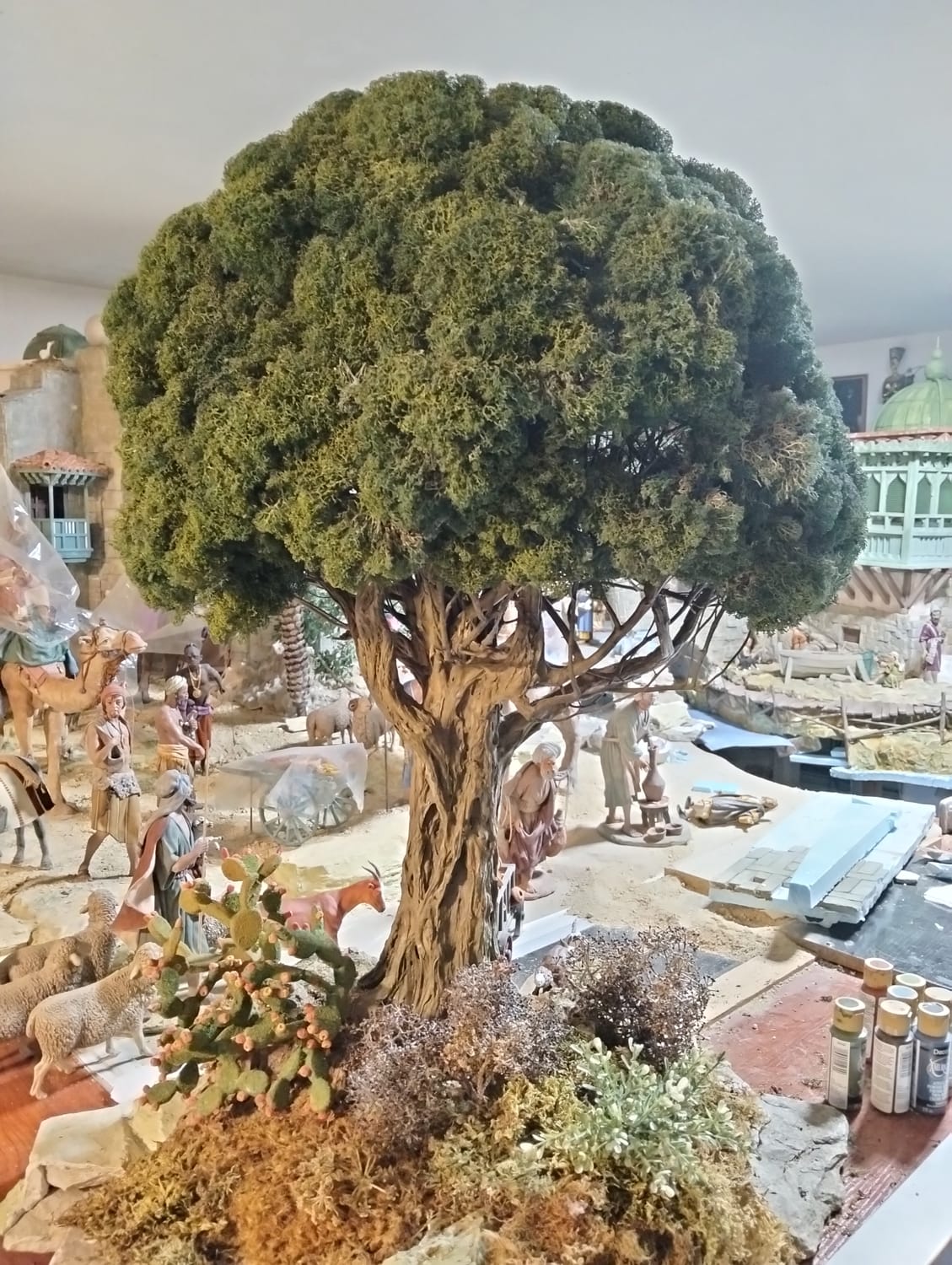 Vendo árbol artesanal con tronco en resina para belenes o dioramas, 80 cm de altura, con copa densa y tronco trabajado a mano para un acabado muy realista. Ideal para montar escenas grandes o dar protagonismo a tu nacimiento.