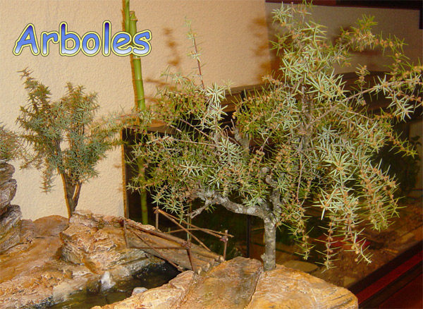 Hola a todos, tengo una amiga que trabaja en un viviero, y me ha ido guardando los bonsaís que se le han secado. Ahora les he dado pegamento en las ramas secas, y pegado pequeños trozos de musgo, les he espolvoreado laca, y me ha gustado el resultado.-