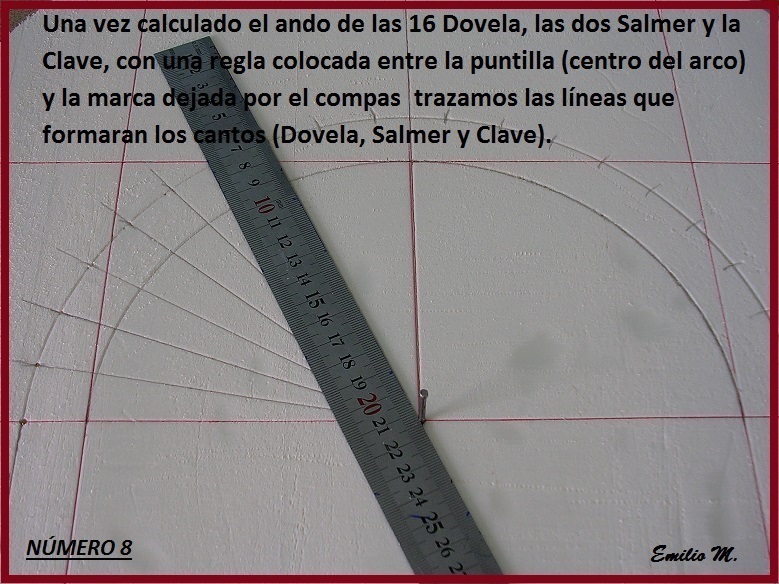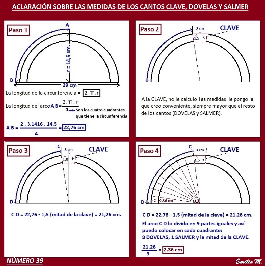 Varios compañeros del foro me han preguntado sobre la colocación de los cantos en el arco de medio punto; así que para que lo vean con más detalles he realizado un paso a paso de cómo construyo dicho arco.