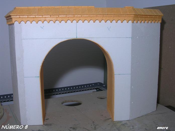 En la cara interna de los dos arcos, he colocado una chapa de poliestireno extruído de 3 mm de grosor y 17 cm de ancha. Dicha chapa la he cortado de una plancha de poliestireno extruído de 3 cm de grosor con la cortadora de porexpán.