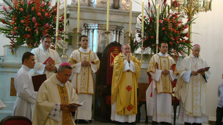 Ustedes les llevarán hoy, de regreso a casa, el abrazo de la Iglesia y de sus Obispos y Sacerdotes. Pero, sobre todo, les llevarán hoy y cada día LA BUENA NOTICIA, LA NOTICIA DE LO MÁS BUENO, LO MÁS BELLO, LO MÁS DICHOSO E IMPORTANTE QUE LE HA SUCEDIDO AL MUNDO, A LA HUMANIDAD; LO QUE CAMBIÓ LA HISTORIA EN UN ANTES DE…Y UN DESPUÉS DE…LO QUE HOY CAMBIARÁ NUESTRAS VIDAS Y NOS HARÁ FUERTES PARA CAMBIAR NUESTRO HOGAR Y NUESTRA CIUDAD. Al escucharlo, los creyentes lo hemos llamado “El Evangelio”. Y esa palabra recoge todo lo anterior, es LA CAUSA DE NUESTRA DICHA, la fuente de nuestra felicidad: Un hombre que había sido tomado preso, juzgado como blasfemo y subversivo, torturado y condenado a muerte, crucificado y abierto después su costado con la lanza del soldado romano, sepultado en una roca y dejado en el vientre de la tierra, ¡”H A R E S U C I T A D O! ¡No está aquí! ¡Ved vacío el lugar donde le pusieron!” (Marcos 16,6). Esta es la impresionante noticia que HOY NOS TIENE AQUÍ, NO EN EL MERO VACÍO DE UNA TUMBA, SINO EN LA PRESENCIA VIVA, CERCANA, HERMOSA, DE QUIEN LLENA TODO EL VACÍO DE NUESTRAS VIDAS, LO LLENA DE AMOR, DE VIDA, DE FE, DE FUERZA INTERIOR Y DE PAZ! ¿Quién da esta noticia a tres mujeres amigas del difunto y seguidoras suyas que van muy temprano, a la salida del sol del domingo siguiente, tres días después de su muerte y sepultura? “UN JÓVEN, SENTADO EN EL LADO DERECHO DEL SEPULCRO, VESTIDO CON UNA TÚNICA BLANCA”, nos dice el texto del Evangelio proclamado. Ese joven, dicen los intérpretes del Evangelio de Marcos, es probablemente el mismo que, en el anochecer del Jueves anterior, cuando Jesús de Nazaret fue hecho prisionero por las autoridades judías en el Huerto de los Olivos, cuando “abandonándole, huyeron todos, UN JÓVEN LE SEGUÍA, CUBIERTO SÓLO DE UN LIENZO. Y lo detienen. Pero él, dejando el lienzo, se escapó desnudo” (Marcos 14, 50.51). Seguramente, estamos ante el testimonio personal del Evangelista Marcos, el que escribió el primer texto entre los evangelios. Es EL TESTIMONIO DE LA INMENSA Y TOTAL TRANSFORMACIÓN QUE PRODUJO EN SU VIDA EL ENCUENTRO CON EL CRUCIFICADO QUE RESUCITÓ, pasando de la soledad y el miedo, de la desnudez y la fuga, a la compañía más absoluta y bella, a la relación que nada ni nadie podrá arrebatarle, al vestido más blanco de dicha y de bienaventuranza. AHORA NO ES UN JÓVEN HUNDIDO EN LA SOLEDAD, en los miedos ante la vida, en los fracasos, en el anonimato sin sentido, perdido en la noche. Ahora es un joven UBICADO en una relación y una presencia que llena su ser, transformado en un ANUNCIANTE SOLEMNE Y SEGURO DE LA RESURRECCIÓN Y DEL MENSAJE QUE JESÚS ENVÍA A LOS SUYOS, convertido en TESTIGO DEL SEÑOR RESUCITADO. El poder de la Resurrección lo ha hecho capaz de “remover la piedra de la puerta del sepulcro”, “que era muy grande”, y las mujeres ven que ya estaba retirada. EL RESUCITADO HACE JOVEN AL MUNDO Y FUERTES A LOS JÓVENES QUE SE COMPROMETEN A SEGUIRLO Y ANUNCIARLO. Serán los jóvenes con su Iglesia, en comunión con ella, quienes removerán tantas “piedras” de los sepulcros que el poder de la muerte y del mal ha abierto en nuestro mundo, en nuestra historia de vidas humanas frustradas, de historias ensangrentadas y heridas abiertas. Ese joven anónimo, que identificamos con MARCOS en el Evangelio, eres tú, hombre, mujer, que hoy estas aquí diciendo con tus compañeros y tu Iglesia de Cali: ¡”HA RESUCITADO, ID A DECID A SUS DISCÍPULOS Y A PEDRO QUE IRÁ DELANTE DE VOSOTROS A GALILEA. ALLÍ LE VERÉIS, COMO OS DIJO” (Mc 16,6.7).