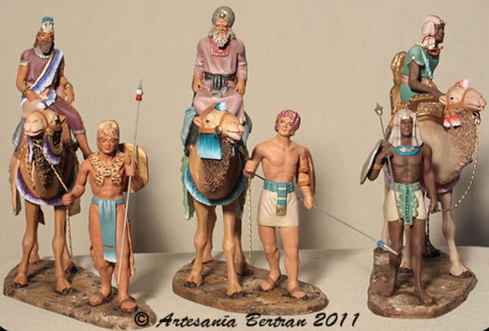 Moldes identicos, sólo se aprecia cambio de colores y en los Reyes a camello y pajes en una sola peana.