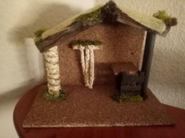 Materiales: madera, musgo neofilizado, corcho en viruta, corcho natural, figuras plastico: 5cm.