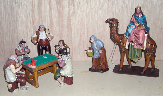 Como es natural pique, y me merque de Nicolas Almansa-los truqueros- un rey a camello que me faltaba para completar el juego, y una vieja con cesta de huevos, todo ello de 12 cmts , os pongo la foto de esto y del mercadillo, aunque no llegue a tomarlo completo pues habia muchas paradas,un abrazo y FELIZ NAVIDAD