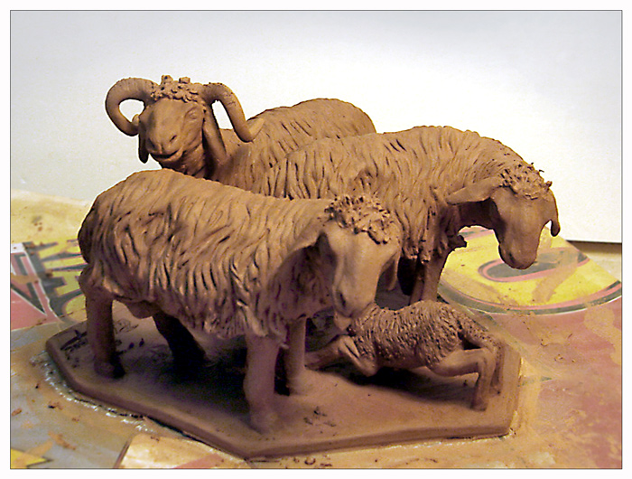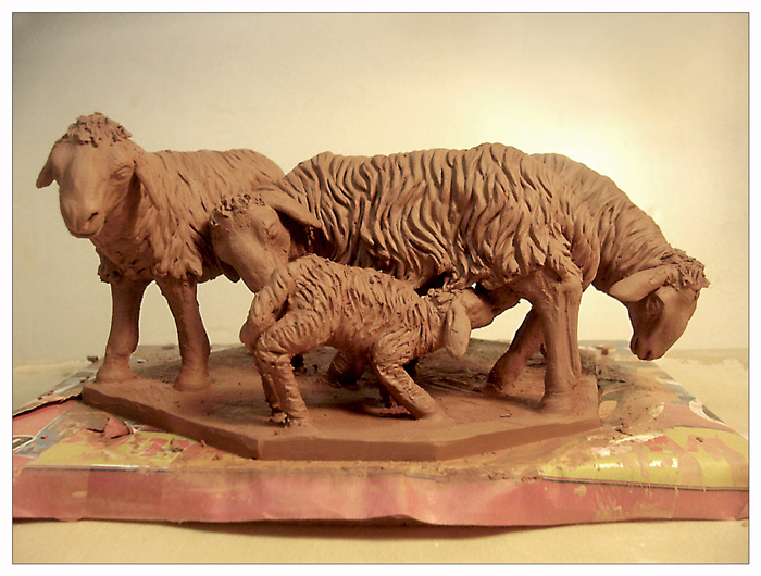 Os adjunto unas fotos de dos grupos de "ovejas" y un grupo de "mujer y niño", aún en barro y antes de cocer, que Pepe Domínguez ha modelado recientemente.
