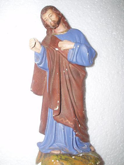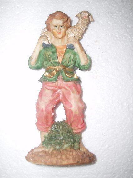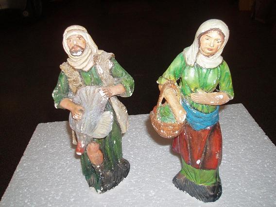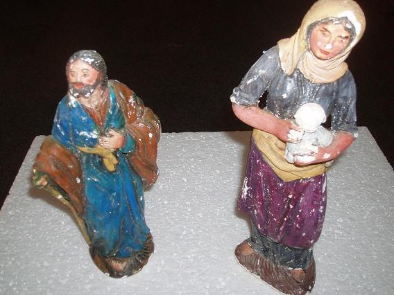 - Luego, veo otras figuras que son de escayola para pintar, como la pastora del cesto o la que lleva la ovejita, el pastor del pavo o el San José, que es copia de Nicolás Almansa.