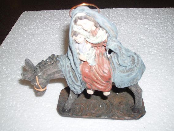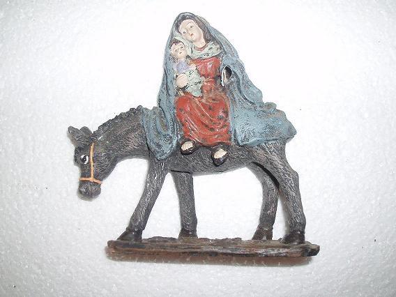 - La Virgen montada en el burro, de la huída a Egipto, buscar al autor va a ser muy difícil, posiblemente sea un chinito y como no hay......., bromas aparte, esa figura es del todo a 0,60 €, fijo.