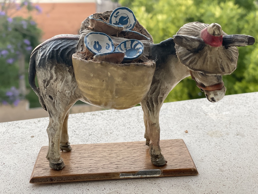Pues al final es de José Lozano y además parece que con su peana original como demuestra la imagen de un burro casi idéntico de 14cms. (mismas caracteristicas, pelaje, cerones con paja y platos, y sombrerito...) encontrado en catálogo de Lozano de la página de figuras www.alcaiceria.com