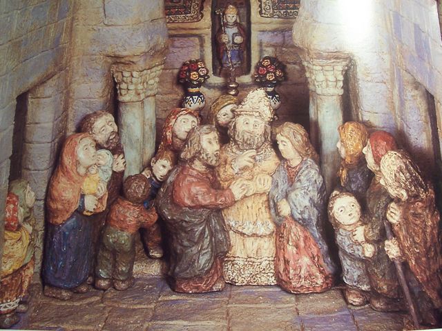 Fijaros que yo sólo conocía unas figuras de él del libro mencionado por Julen y me pareció sencillamente encantador, en pocos gestos, en pocos rasgos...!ya está¡ una figura que expresa todo, desde alegría a dolor, nostalgia, miedo, ternura, humor, revival del costumbrismo puro. Aunque sólo sea así disfrutemos de sus imágenes, todo un icono para Galicia y un regalo al belenismo