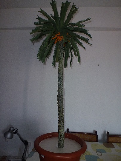 Esta palmera es para mi casa, mide 125 cm. de altura y una copa 45 cm.. La acompañará otra que se está fabricando