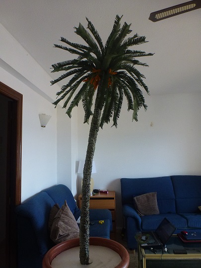 Esta palmera es para mi casa, mide 125 cm. de altura y una copa 45 cm.. La acompañará otra que se está fabricando
