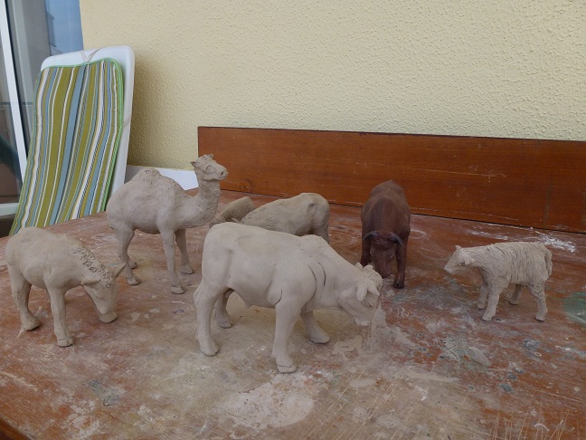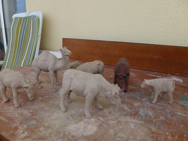 32.- Diferentes piezas del molde de oveja con sus originales en cada lado.