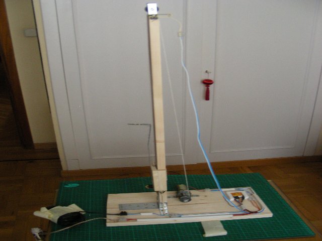Foto 17.jpg (56KB - 266 descargas)Este artilugio que vamos a construir consta de una base, una columna, sobre la que se va a deslizar una tabla a modo de patinete, mediante la tracción de un cordón colocado en un motor de c.c. ( Ver figura)