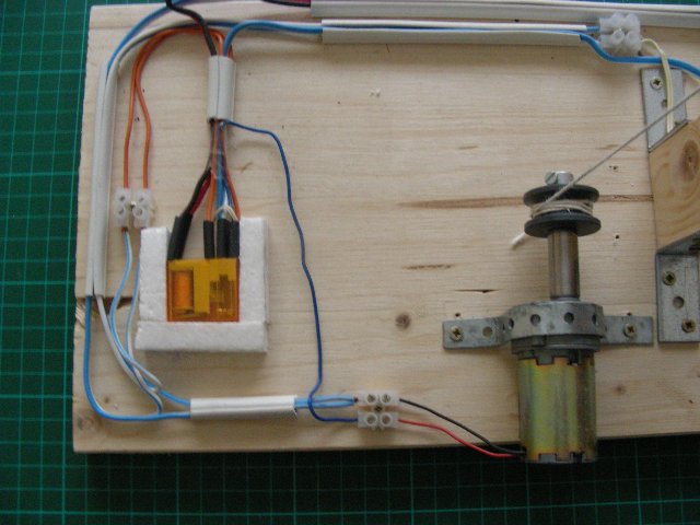 Dejamos el motor preparado para unir sus cables al circuito mediante una clema que atornillaremos a la base de madera para que no ande todo suelto(Foto 30).