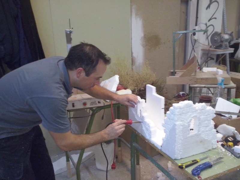 Seguimos trabajando, esta vez en nuestro gran belén monumental, que muchos ya conoceís. Este año, estamos procediendo a cambiar parte de su aspecto actual, dotándole de nuevas escenas con figuras del maestro Guilloto y añadiendo nuevos elementos paisajísticos, que esperamos os agraden.