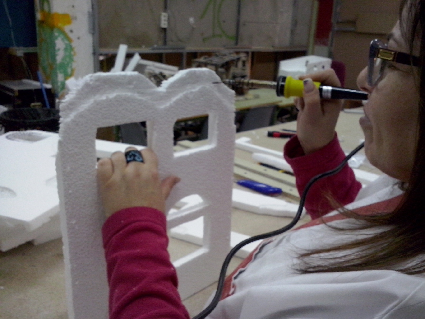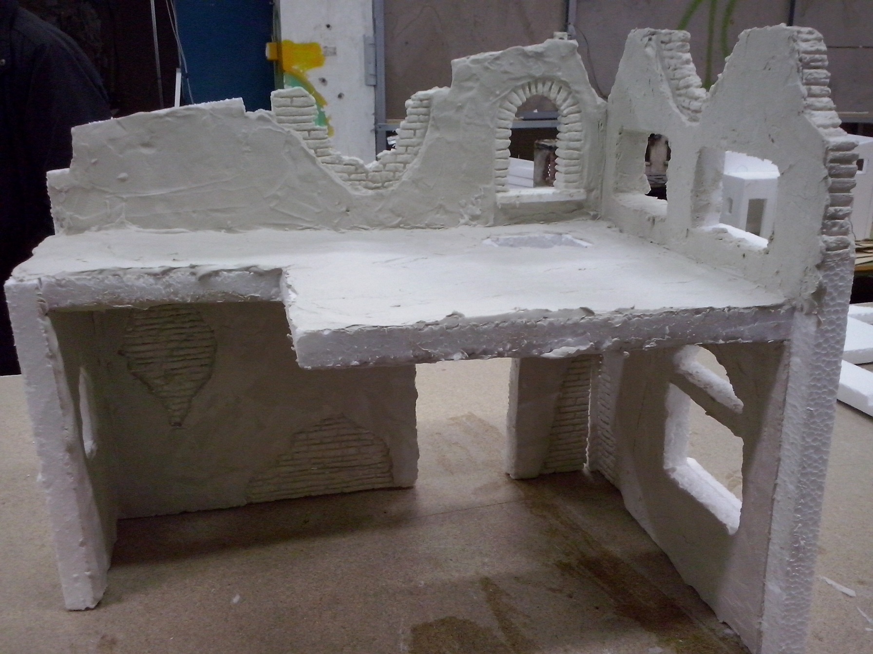 En esta penúltima semana se ha ido acoplado muchas piezas de madera, enlazando los cables de las antorchas e iluminación interior hacia la parte trasera. Además se ha puesto la base con la casa. En el nivel 1 han realizado ya los huecos donde van a ir expuestas las figuras, a falta de los pequeños remates. Nuestro compañero David Baena estuvo dando una pequeña charla a los alumnos explicándoles sobre las proporciones de las figuras en las construcciones.