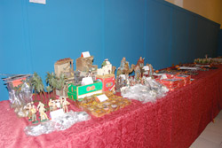 Un completo “Mercadillo Público” en el que se podrá adquirir todo lo relacionado con la construcción y el exorno del “Nacimiento”, materiales, figuras, iluminación, complementos, documentación, literatura belenista, automatismos, bocetos, vegetación, videos, fotografías, así como diversos belenes realizados por miembros de la Asociación.