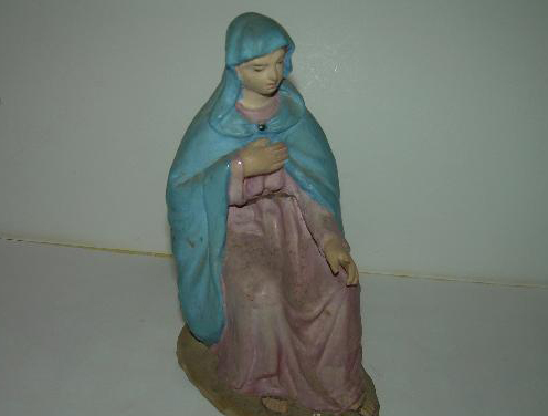 Otro de esos extraños misterios... El San José, o uno muy parecido (quiero decir que éste puede ser copia) está identificado (se vio en la exposición de Mataró de 2010) como Masdeu, aunque a mí no me parece nada del estilo. La virgen y el niño son un desastre que no puede ser considerado de autor, en ese lote había figuras de Teixidor "legales" y alguna copia horrorosa (que no digo cual, ya que algún forero se la ha quedado, seguro). De ese lote yo me he quedado el pastor calvo con bigote y sin manos, que ya habíamos visto en alguna otro post.