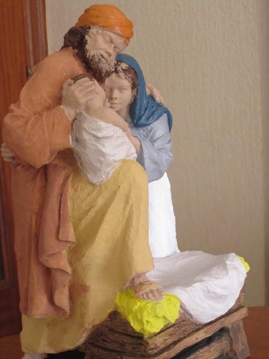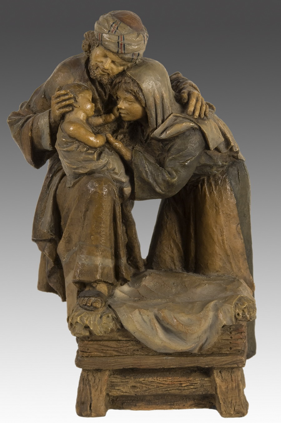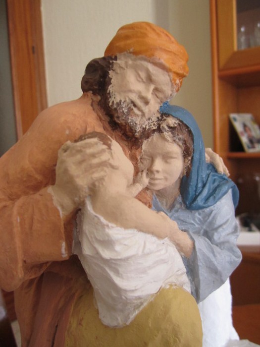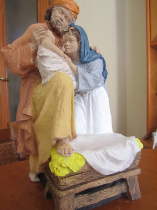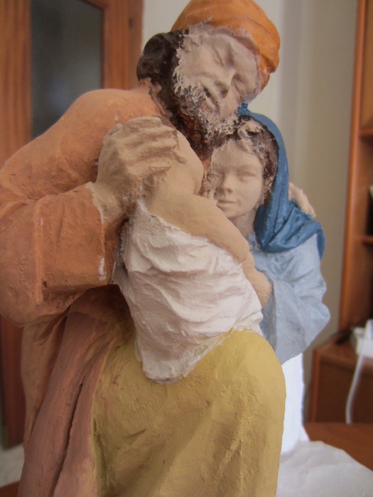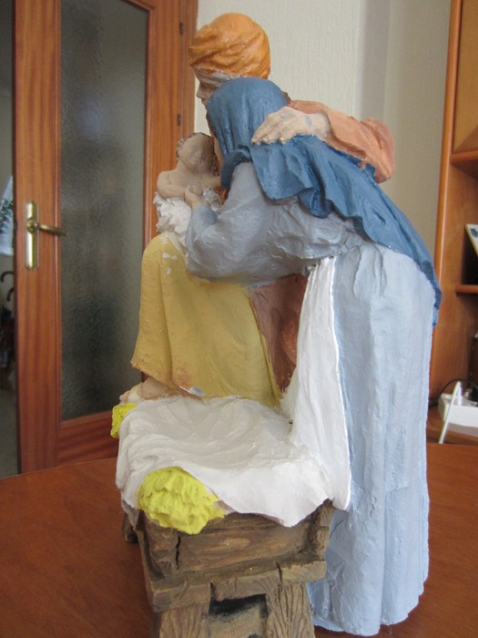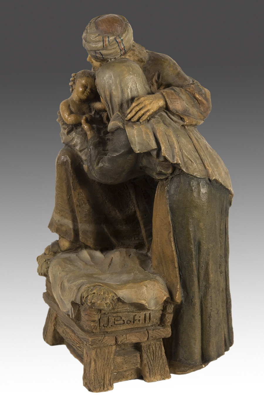 Es una pieza de Josep Bofill Moliné, hijo del prestigioso belenista Josep Bofill Herrero y nieto de Antoni Moliné, considerado por muchos como el "padre" de los belenes de yeso. Normalmente es un escultor que no policroma sus piezas, o como máximo les da una pàtina muy ténue de color, lo que para los belensitas es una pena. Aquí veo que alguien se ha atrevido a darle color en serio. la verdad es que sus obras bien pintadas poeuden ser muy bonitas para los belenes.