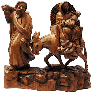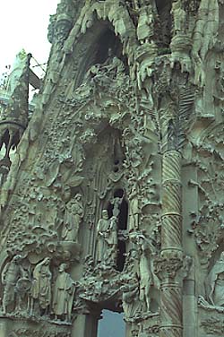 hola paisano bueno he buscado mucho lo de la figura,he encontrado esto,en la Sagrada Familia de Gaudi hay una fachada que se llama del nacimiento,esta llena de simbolismos dedicados al nacimiento de Jesus,la parte baja esta compuesta por tres portales,uno de ellos llamado el del amor,otro llamado el de la fe,y un tercero llamado el de la esperanza,en el se reflejan las imagenes de la Huida a Egipto,los otros incorporan escenas de la Anunciacion y del Nacimiento,figuran el buey,la mula ,San Jose, la Virgen ,los Reyes,angeles ,pastores ect...parece ser que para la escena de la huida hicieron el molde del asno con uno de verdad que pertenecia a una pobre mujer que vendia arena para fregar en un carro, parece que penso que le harian daño a su animal al hacer el molde y dice la historia que no paro de llorar mientras le hacian los moldes la pobre mujer ya que penso que no sobreviviria,habria que estar alli para verlo todo ,hubiese valido la pena,bueno todavia no se de quien es la figura pero que sepas que esta en la Sagrada F amilia,habra que ir a verla,y sino que nos cuenten algo los amigos de Barcelona que andan por aqui,desde luego Gaudi la plasmo en su catedral eso si es cierto...un saludo,espero que te sirva de algo.