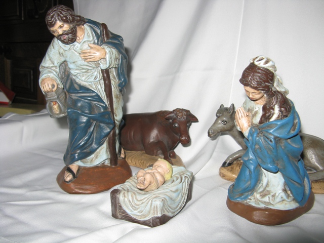 Ese San José, parece una reproducción en escayola. En mi casa tenemos un misterio de escayola con esa figura, y recientemente he pintado otro igual. Creo que están tan planos de las caras por los moldes. Voy a intentar encontrar el autor, porque me suena haberlo visto en alguna parte.
