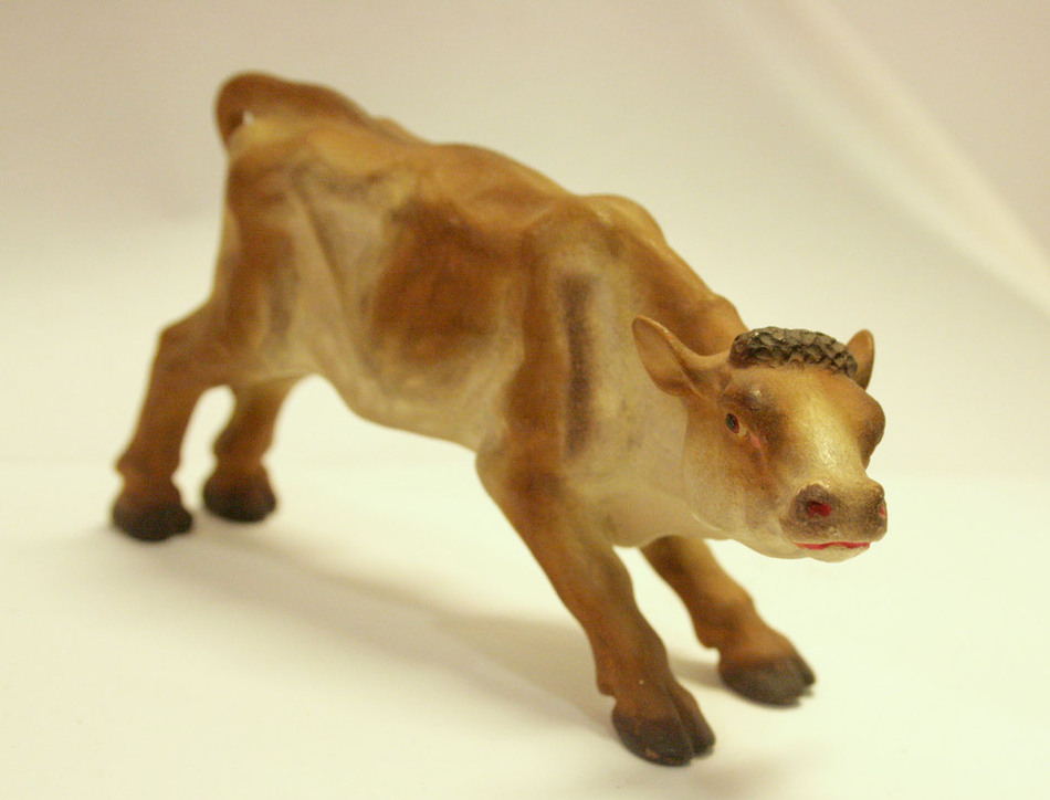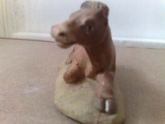 Bueno aqui teneis el buey que comente los cuernos supongo que serian de metal y las orejas eran de carton ya que queda un trocito dentro, su anterior dueño me comento que es muy muy antigua, tambuen tengo la mula que hace juego ( desgüazada) pero en breve la arreglare un poco. Bueno el tratamiento de los huesos de la cadera es practicamente igual que el de Antoni.