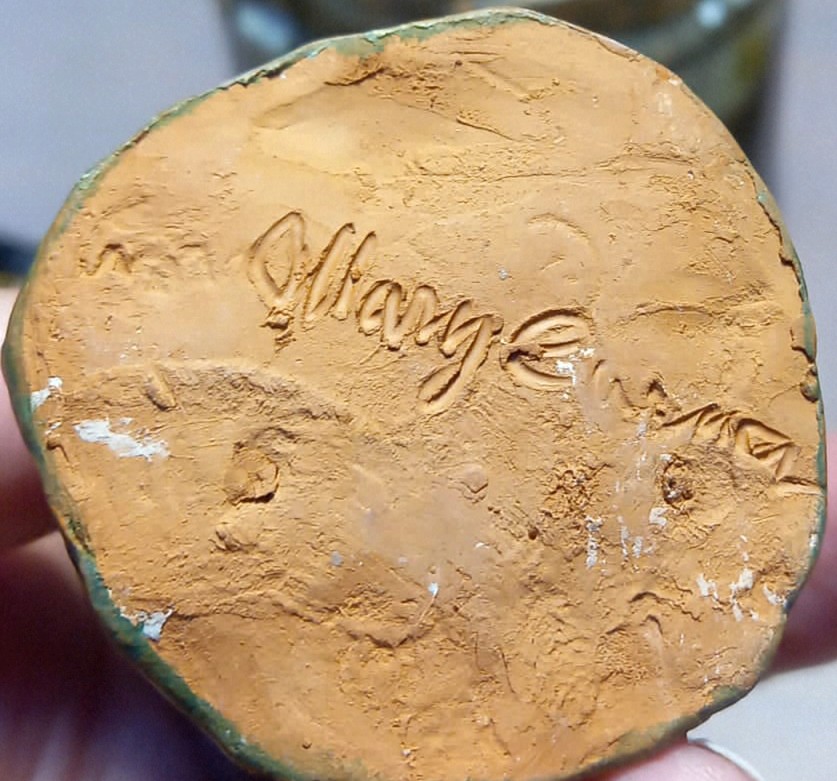 Si os fijáis bien, justo encima de la peana hay una firma que claramente no es la de M. Castells: es más larga y, además, el estilo de la figura no coincide con el suyo, que suele ser bastante reconocible.