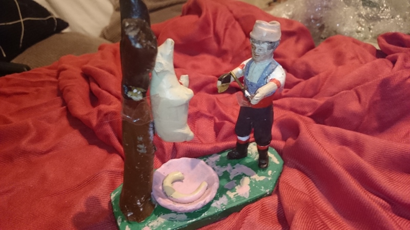 Hola buenos dias, me gustaría que me ayudéis a averiguar a quien pertenece esta figura. Si no sabéis el autor me bastaría con que si alguien tiene esta figura subiera una foto, ya que lo que quiero es saber los colores originales que tenía la figura para intentar arreglarla. Gracias.