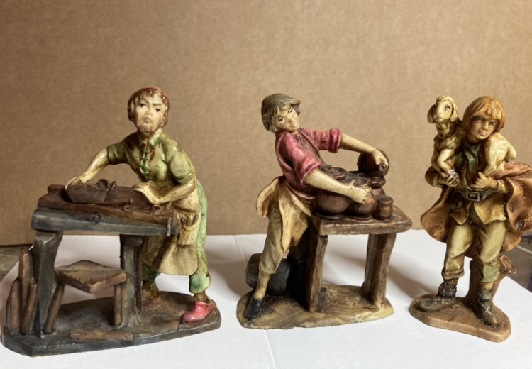 A ver si me podéis ayudar. Estas figuras tienen unos 35 años mínimo, no sé si más, son de marmolina y pintadas a mano. Las pinto mi madre que es artesana y antes vendía a muchos puestos, en uno de ellos las compro pero no se acuerda cuál. Soy de sevilla, por si ayuda.