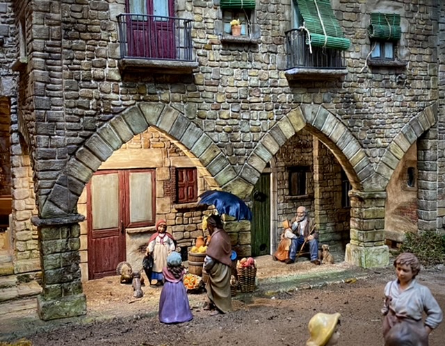 Este año, tan especial, ha hecho que para los belenistas sea fructífero, ya que para pasar el tiempo de confinamiento nada mejor que adelantar trabajo. Así que, buscando espacios para ampliar nuestro belén se me ocurrió hacer una escena de inspiración napolitana en una zona que me parecia desaprovechada. Las figuras son de la marca italiana Landi- Moranduzzo, en resina de 12 y 13 cms y ataviadas al estilo setecento. Las miniaturas y el mobiliario están hechos por mí. Espero que os guste...