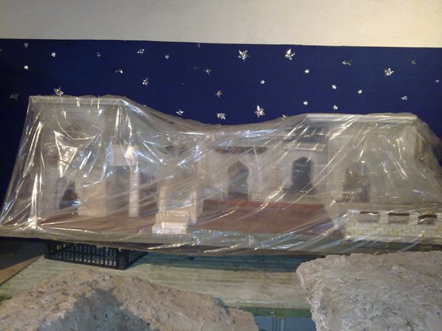 Por fin conseguí enviarlas. Son parte de las edificaciones que están todavía protegidas con plasticos. El Belén tiene una susperficie de 120 m2, instalado en un tablero con varias alturas de 40 m de largo x 3 metros de ancho. Tardamos aproximadamente 2 meses en montarlo con la colaboración de toda la familia. La verdad que es una gozada, aunque tenemos momentos de todo, de nervisismo, discusión, alegría, pero al final, merece la pena ver la obra terminada. Está instalado en la localidad de Socuellamos (C. Real), y a partir del día 8-diciembre hasta después de Reyes, la Familia González Alcolea abre las puertas de su casa para visitar este maravilloso Belén Monumental (no es porque lo digo yo, pero es verdad, es maravilloso).