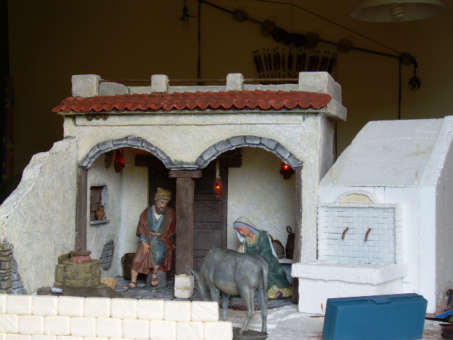 Aqui os muestro mas avanzado mi belen, acabo de darle escayola al suelo y como podeis ver he hecho una palmera que aun le quedan por poner los datiles, y la fuente esta terminada.