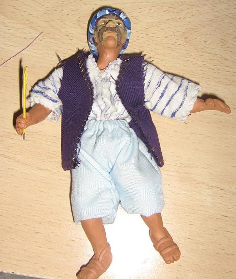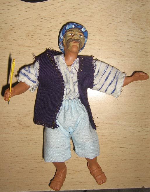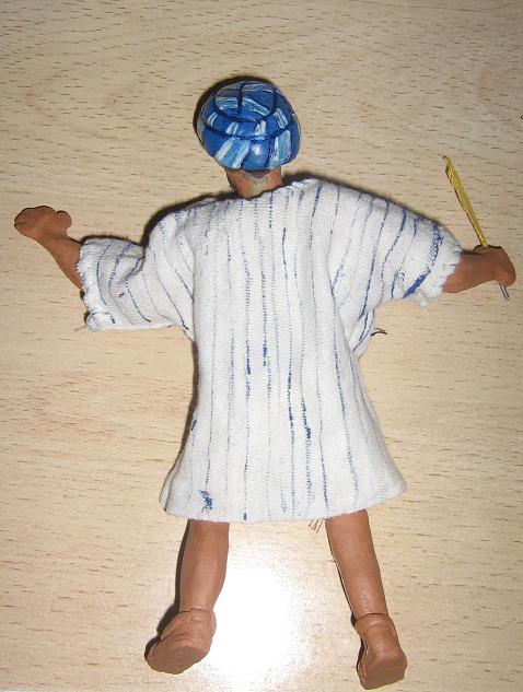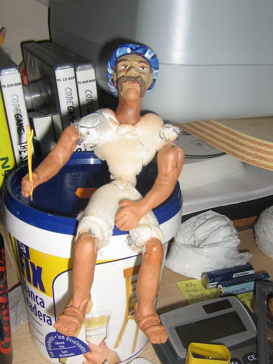 Bueno, pues ahora que terminé el molino he corregido al turco...está secando la barbilla y el cuello,espero que no se despegue el barro aunque no tiene pinta de hacerlo, también le hice los brazos y los pies y tengo todo medio montado,es medio figura napolitana...medio que no jajaja me explico, como no tengo lo que se pone en las figuras napolitanas lo he revestido con tela como de guata veremos a ver el resultado final...claro lo tengo que pintar todo de nuevo y siguiendo los pasos de Santi y Jesús seguro que mejora mucho el color.He pensado que le voy a poner a escribir algo....pero todavía no sé que será.De momento este es el aspecto que tiene....si, ya se que parece Hulk Hogan y que está de pasar algo de hambre...lo corregiré....pero de momento es lo que hay jajajaja.