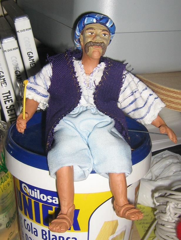 A ver que os parece el pintado y el vestuario....ES TODO PROVISIONAL ,bueno, la pintura si no ponéis muchas pegas será la definitiva,(quitando el gorro que ese al final no sé como irá).No se si se cargarán las fotos, lo intentaré que no tengo internet y tengo "prestada la linea adsl de mi prima" osea, que puede que no vayan fotos jejejeje perdonadme.Es para hacerme una idea y continuar con el trabajo mientras.Gracias a todos.