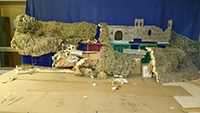 Necesito ayuda, estoy estancada, os subo unas fotos del belén de los pacientes, quiero poner el rio pero estoy estancadisima no se donde ponerlo, este año me gustaria hacer una cascada recta que acabe en un lago y siga el río, pero no sé por donde empezar ni donde colocarlo, este año el pesebre lo pongo  en la cueva que esta en la ventana para que se contemple desde fuera cuando el hospital cierre de noche, haber si me podeis dar ideas gracias.