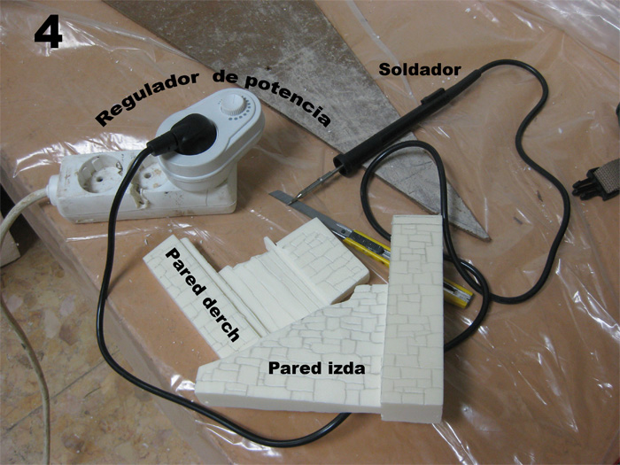 Foto 4 - 4 bis :  Una vez tengamos los dibujos hechos comenzaremos con el soldador a pasar por las rayas ,después con el cúter tayaremos para dar volumen y realismo a las piedras.