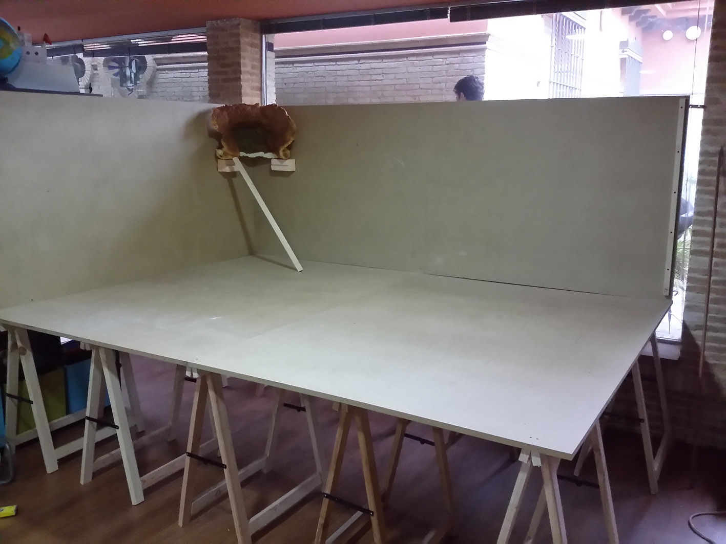 Os informo un poco de cómo es mi belén, no obstante pondré fotos, que siempre se entenderá mejor: El belén de este año lo monto sobre 10 caballetes de madera, teniendo el belén una superficie de 285 cm de ancho y 210 cm de largo y contando con 2 paredes, una lateral y otra frontal.