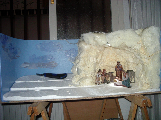| siento mucho no poner una foto en el mensaje,tengo algun problema con el ordenador y hasta el lunes no me lo solucionan pero si miras en el albun de Geni, belen parroquial de geni 2005,veras fotos de cielos esas son las que te queria mandar, creo que no le importaria.si no me equivoco el cielo es de tela y se nota alguna arruga por eso lo de tensar bien.Lo siento de todo corazon no poder mandar las fotos.:( :( :( |