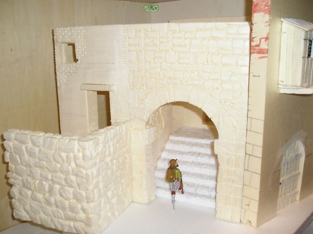 Hola ori yo suelo utilizar el porexpan de alta densidad o extruido que es el de colores ,amarillo ,azul , rosa etc.. con el expandido o blanco tambien se puede hacer pero suelta muchas bolitas , te estoy ablando del tipico corcho blanco que vienen en las cajas de electrodomesticos . De todas formas arriba a la izquierda te pone Buscar , pincha en esa palabra y pon porexpan y le das a ir , te saldra muchos temas , de todos modos hay gente que no encuentra el de colores o extruido y se tiene que arreglar con el blanco o expandido , como una imagen vale mas que 1000 palabras te pongo una foto del que estoy haciendo en estos momentos , aqui tienes los 2 tipos de porexpan las escaleras es con el blanco ,y el muro y las casas es con el amarillo . Un saludo .