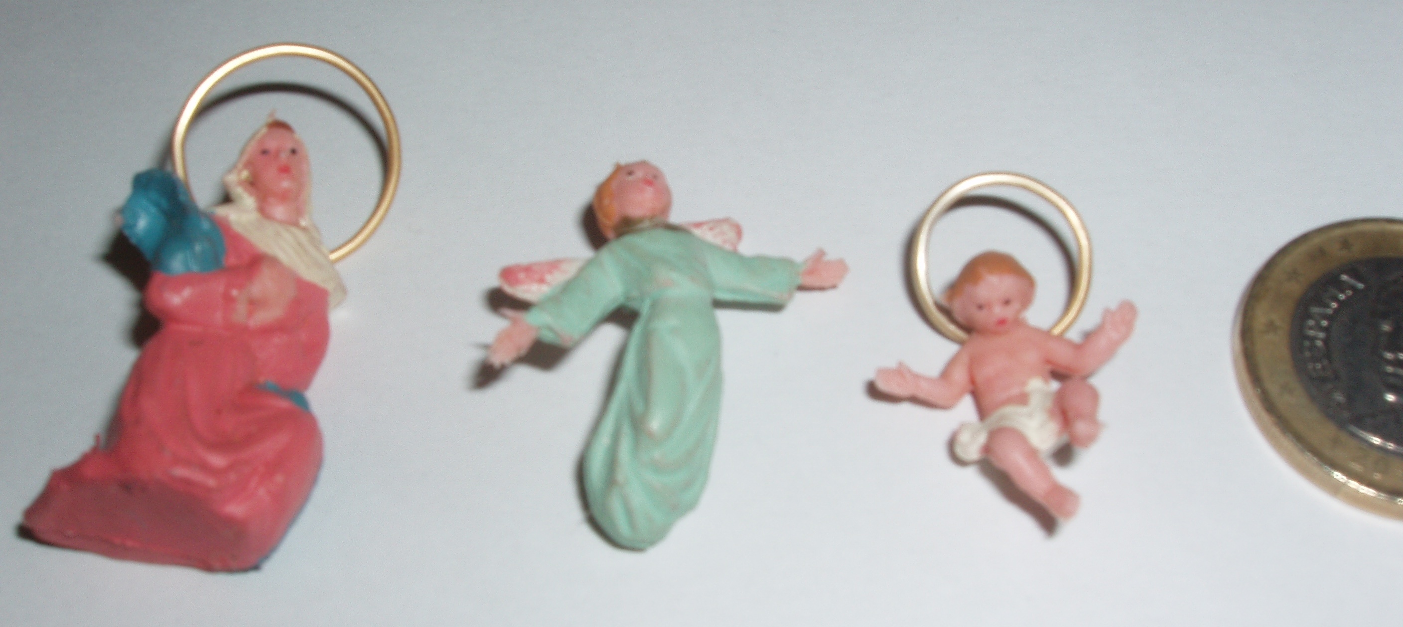 1.- Es para identificar el fabricante de las tres figuras que van en la foto 1, yo creo que son de Oliver pero no estoy seguro, son muy pequeñas, el niño Jesús es del tamaño de una moneda de 1 euro y la Virgen María, no llega a dos monedas. Me llegaron con un lote de figuritas pequeñas de la serie estilizada de Mirete, pero no son evidentemente de Mirete.