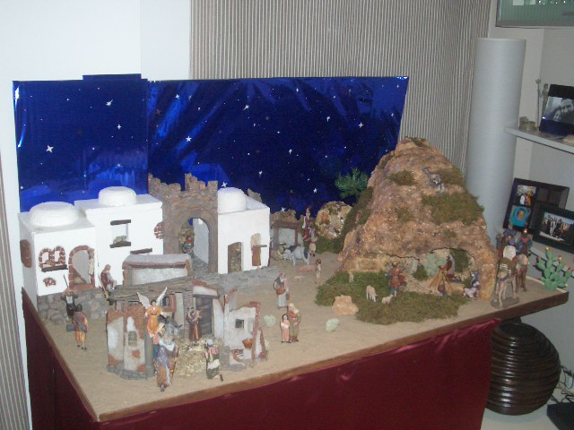 Las fotos que ha subido Juan Ramón a este tema del foro son de mi belén. Gracias, Juan Ramón, por tus consejos sobre el tema, la verdad es que tengo tarea. Y sobre el comentario de Bambi, no sé si con el mensaje sobre cómo se ha hecho la montaña te referías a mi Belén o al del compañero Juan Ramón. Si era al mío, decirte que la montaña la hice pegando planchas de porexpan una sobre otra hasta conseguir la altura que quería -o algo más- y después fui tallándola a golpe de cuter y cuchillo de sierra de los de cortar el pan. El hueco de la cueva lo hice igual, vaciándolo poco a poco. Creo que fue una tarea demasiado ardua y engorrosa y quizá los compañeros del foro te podrán comentar alguna técnica que no haga que parezca que ha nevado dentro de tu casa -por las bolas de porex que saltan por todos lados al vaciar la gruta-. Este año variaré considerablemente la escenografía del Belén, pero si tuviera que repetir la montaña la haría con espuma o algo así. De nuevo gracias a todos por el interés y hasta pronto.
