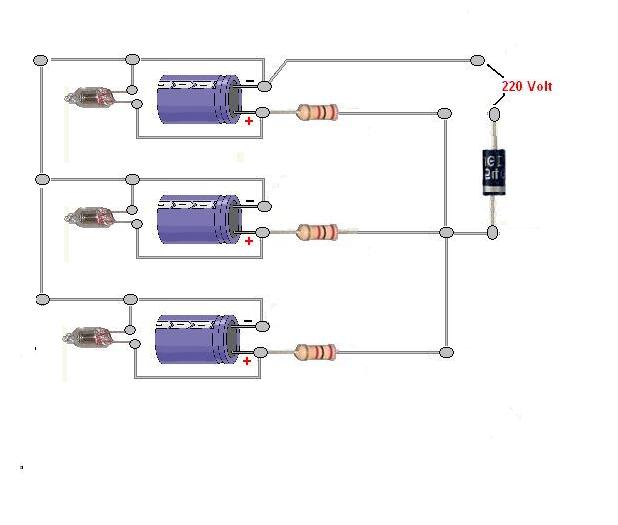 iscoco - 11/11/2012 00:39 Hola J. David como estamos?? mira probé conectar la luz LED este ultimo esquema que me pasaste y no me enciende, y hize tal cual esta representado. Encontre otro esquema que ahora lo subo por si tambien es válido tu ya me dices ok, y bien respecto a los neones estoy en ello ya tengo todos los materiales y bien me surje una duda en el esquema veo que el condensador tiene + y el - y en la realidad no se como distinguirlos porque las patillas son iguales jeje. Ahh otra cosa para soldar todos esos componentes lo suyo seria tener una placa de esos circuitos impresos pero me pregunto ¿si todas las placas valen o tiene que ser alguna específica? Nuchas gracias.