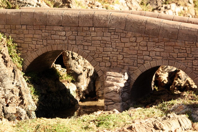Una vez que tenía las dos caras del puente cortadas, me dispuse a tallarlas con el soldador. Hice la forma del arco con las piedras, como si estuvieran cortándose el paso, como son en un arco de verdad. Las otras piedras las tallé como si fuera un puente de sillería, pero tuve mucho cuidado de que no parecieran todas iguales.