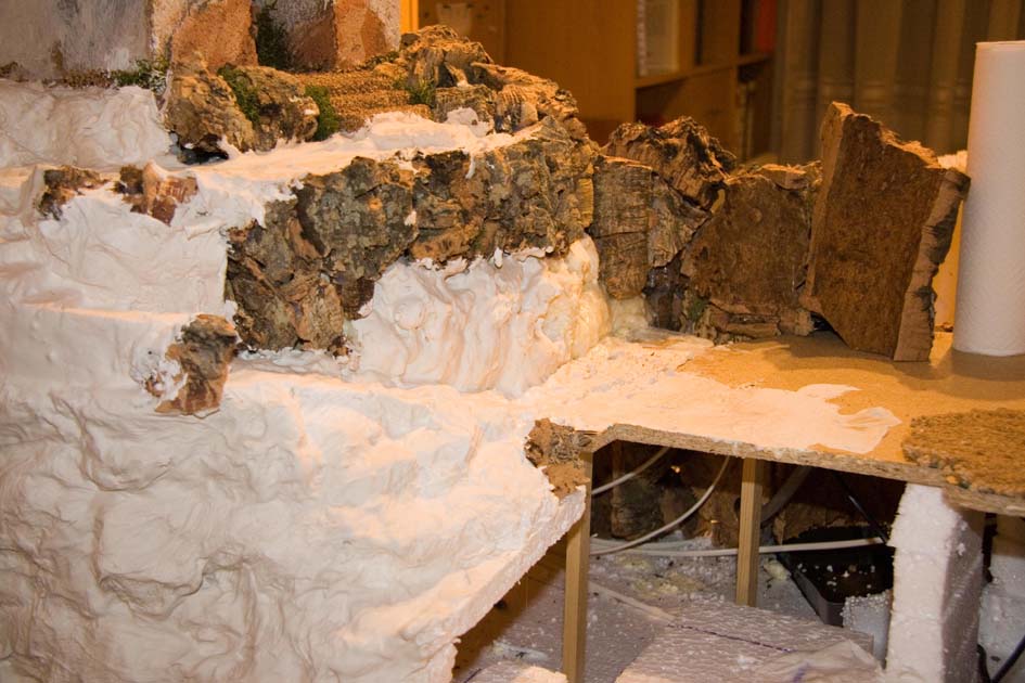 Para mi gusto has dejado formas en la montaña muy redondeadas, lo que después afecta en el pintado, a la hora de dar las veladuras. Yo hubiera hecho partes más angulosas para que no quedase tan homogéneo, fíjate en los trozos e corcho como tienen más recovecos y ángulos.